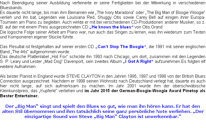 Geboren 1962 in Birmingham (GB), begann STEVE CLAYTON im Alter von 10 Jahren, sich für Musik zu interessieren. Dies veranlaßte seinen Vater, ihm ein altes Klavier zu kaufen und ihn zum Klavierunterricht anzumelden.